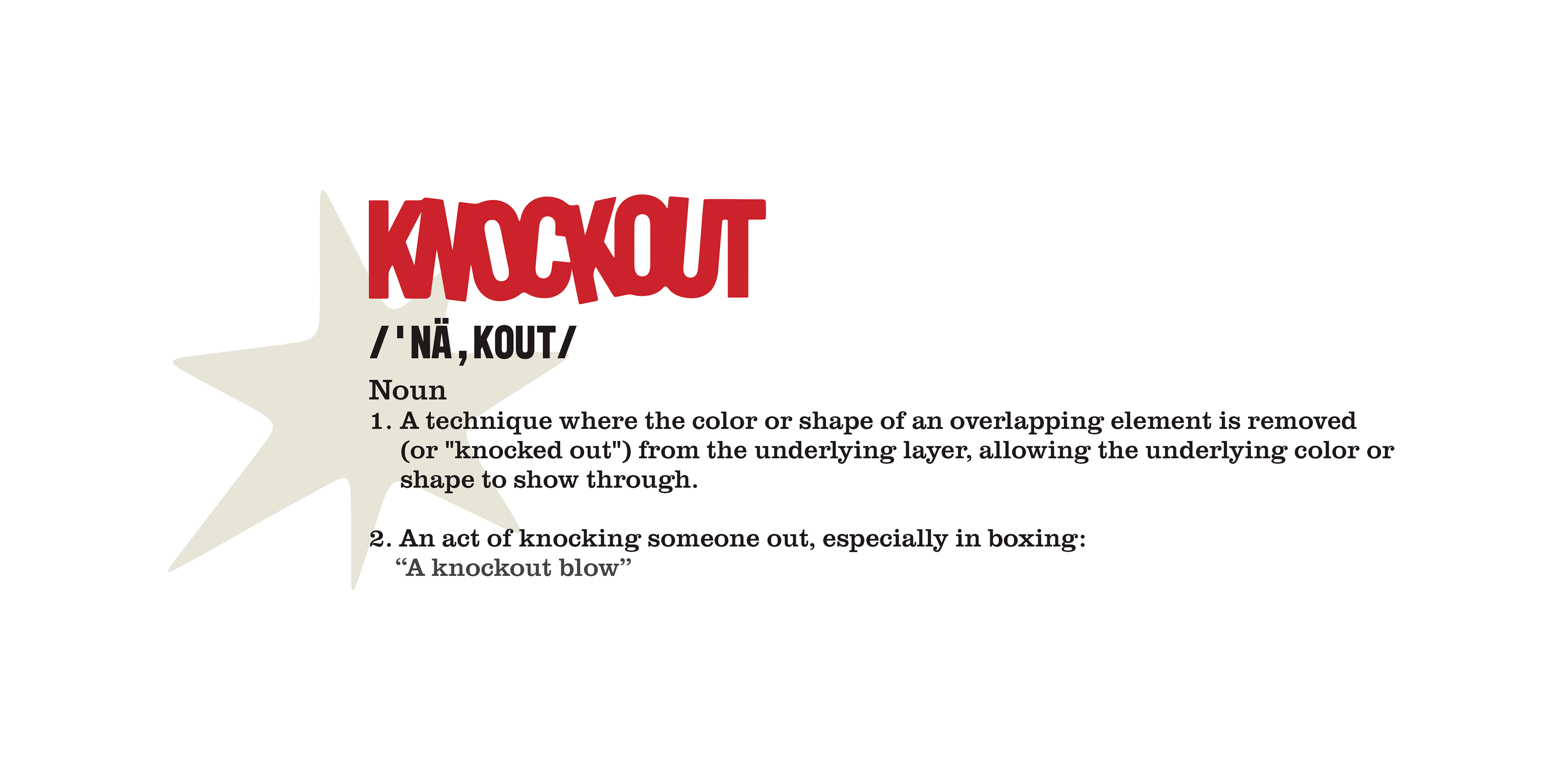 4X5 + WALL POSTERS EXPLAINING THE MEANING OF KNOCKOUT IN THE "ORDINARY" & "DESIGN" DICTIONARIES.